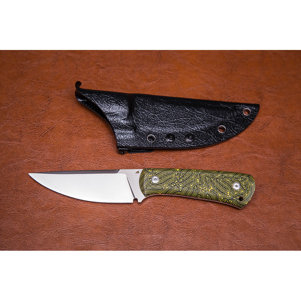 Фултанг из стали S90V K-4 из порошковой нержавеющей стали S90V с твердостью 62 HRC. Поверхность клинка - заполированный пескоструй. Материал рукояти - микарта . Длина клинка 105 мм, ширина 32 мм, толщина 3,5 мм. Вес - 145 грамм. Комплектация: нож, ножны из кайдекса, сертификат. Более подробная информация во вкладке Характеристики. ВНИМАНИЕ!!! Рукоять ножа неразборная. Плашки и винты залиты эпоксидной смолой для герметичности.
